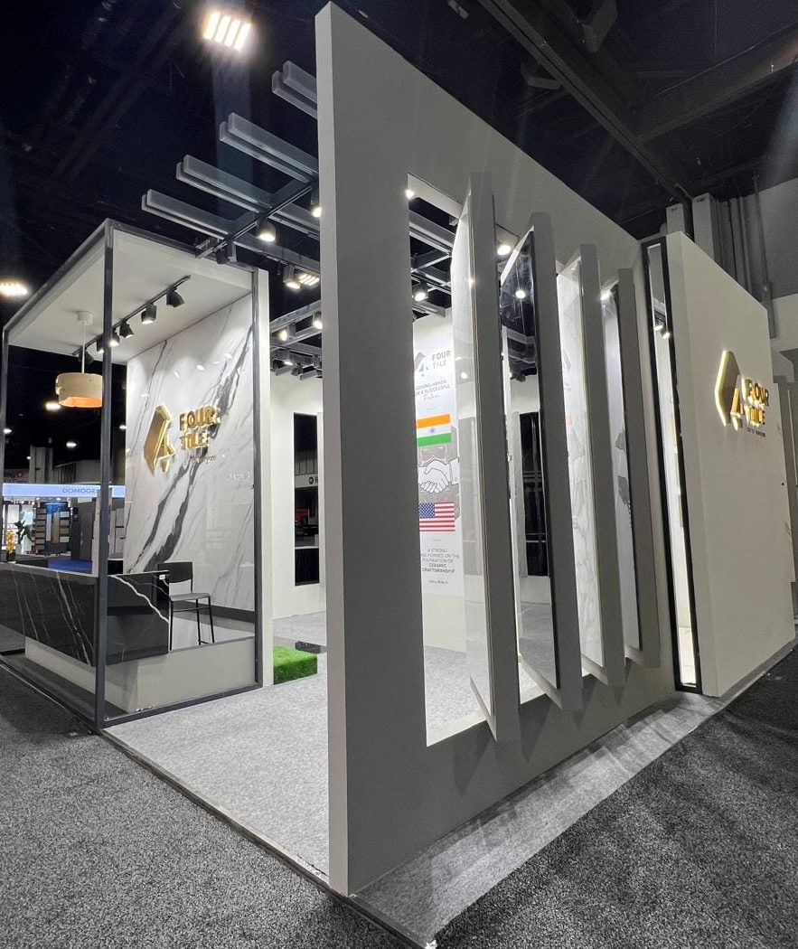 4Tiles is a prominent business from India specializing in tiles and flooring solutions. They rented a **600 sqft** (approx. **55.74 sqm**) booth from us for Coverings in Atlanta. Their primary goals included enhancing brand visibility, engaging in productive meetings, and capturing valuable leads. We supported these objectives by providing a well-designed booth that attracted foot traffic and facilitated discussions with attendees. Learn more about their offerings on their official website.
